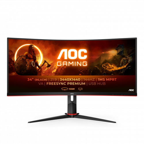 Monitor AOC CU34G2X 34" Curvo WQHD: 144Hz, FreeSync, USB Hub